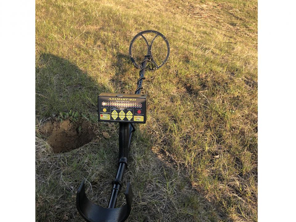 Вашему вниманию представляется профессиональный металлоискатель Адамант Ф25. За несколько лет серийного производства прибор зарекомендовал себя как неприхотливый мощный инструмент на поиске металлических объектов. Притом диапазон задач поиска очень широкий: от небольших реликвий и самородков до рудных месторождений. Как и все металлоискатели фирмы "Фрагма", Адамант Ф25 обладает очень высокой чувствительностью - около 33 сантиметров на монету 5 рублей, предельная - 2 метра. Индикация найденного объекта звуковая политональная, и светодиодная панель позволяет определить тип найденного металла, его приблизительные размеры и глубину до него. В стандартную комплектацию металлоискателя входят: процессорный блок на штанге с телескопическим выдвижным коленом, стандартный водонепроницаемый ударостойкий датчик Д26, подлокотник с мощным аккумулятором, 2 зарядных устройства (от сети 220 Вольт и от прикуривателя автомобиля), наушники и паспорт прибора. Штанга прибора изготовлена из легкого и прочного ПВХ-пластика, длительный поиск не доставляет дискомфорта.