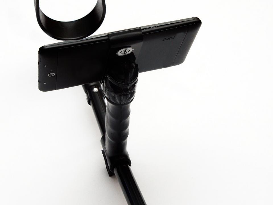 - На задней стенке процессорного блока металлоискателя располагается камера 8 Мп для получения снимков найденных объектов.